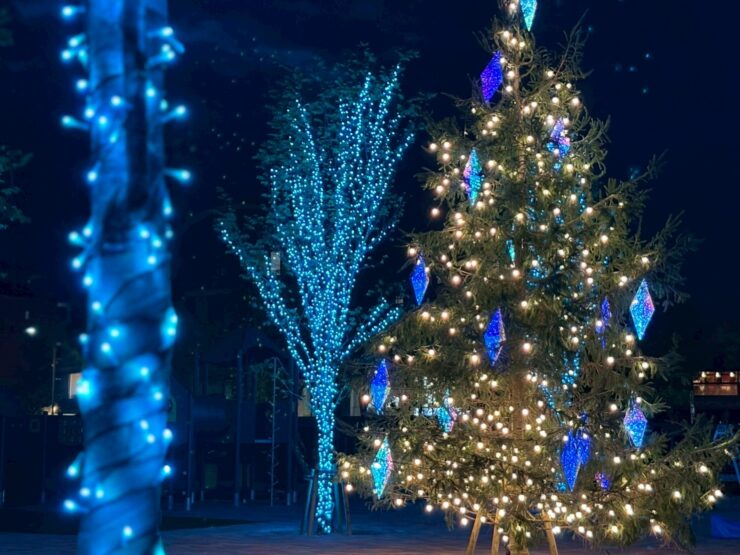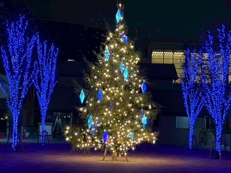 シンボリックなモミの木を中心に、街路樹にはフルカラーのイルミネーションを飾りました。