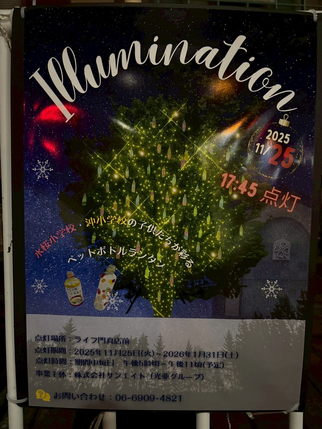 • ライフ門真店様の地域参加型ペットボトルツリーイルミネーション点灯中!(裏側も少し記事にしてます)