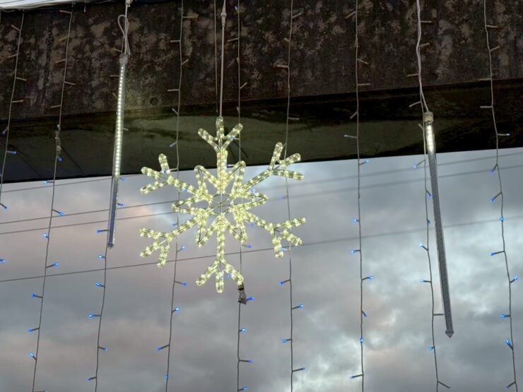 兵庫県にある関西福祉大学様のウインターイルミネーションです。 2025年も担当させていただきありがとうございます。 クリスマスツリーを新品に入れ替えて、背景デザインを変更いたしました。 既存の柱の輪郭を使って、アーチ型イルミネーションをご提案いたしました。 毎年、クリスマスツリーの前で写真撮影をされる人が多いとお聞きしておりました。 今回のデザイン変更でクリスマスツリーがより強調されて、素敵なフォトスポットとなりました。